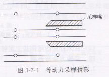 在图3-7-1中是等动力采样的情形。图中采样头安装在与样头内外的流场完全一致,因此随气流运动的颗粒并没有受到任何干扰,扔按原来的方向和速度进行取样头。