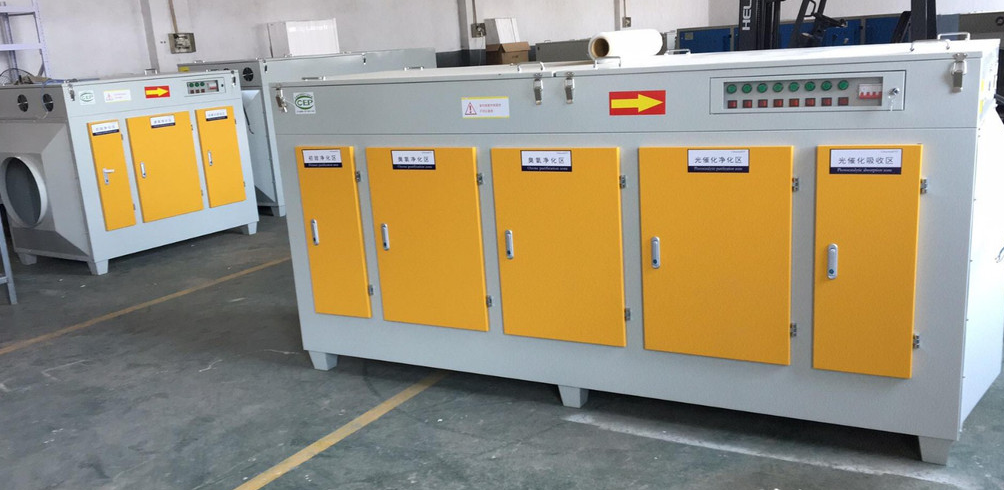 UV光解净化设备是利用高能高臭氧UV紫外线光束分解空气中的氧分子产生游离氧,即活性氧,因游离氧所携正负电子不平衡所以需要与氧分子结合,进而生产臭氧。臭氧对紫外线光束照射分解后的有机物具有极强的氧化作用,对恶臭气体及其它刺激性异味有良好的削除效果。