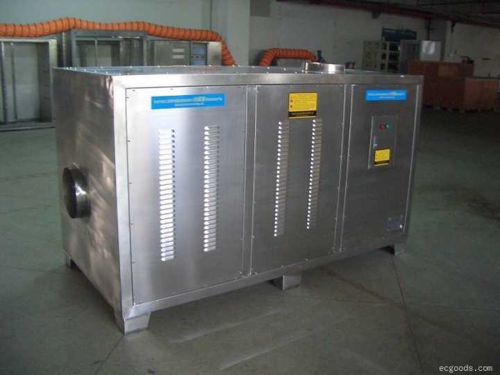 2、“低温等离子体有机废气净化设备”利用低温等离子体产生的具有高氧化性的臭氧,在催化剂的作用下,使有机废气在较低的温度完全转化。该设备可应用于溶剂厂、印染厂、油漆厂等有机废气排放源。