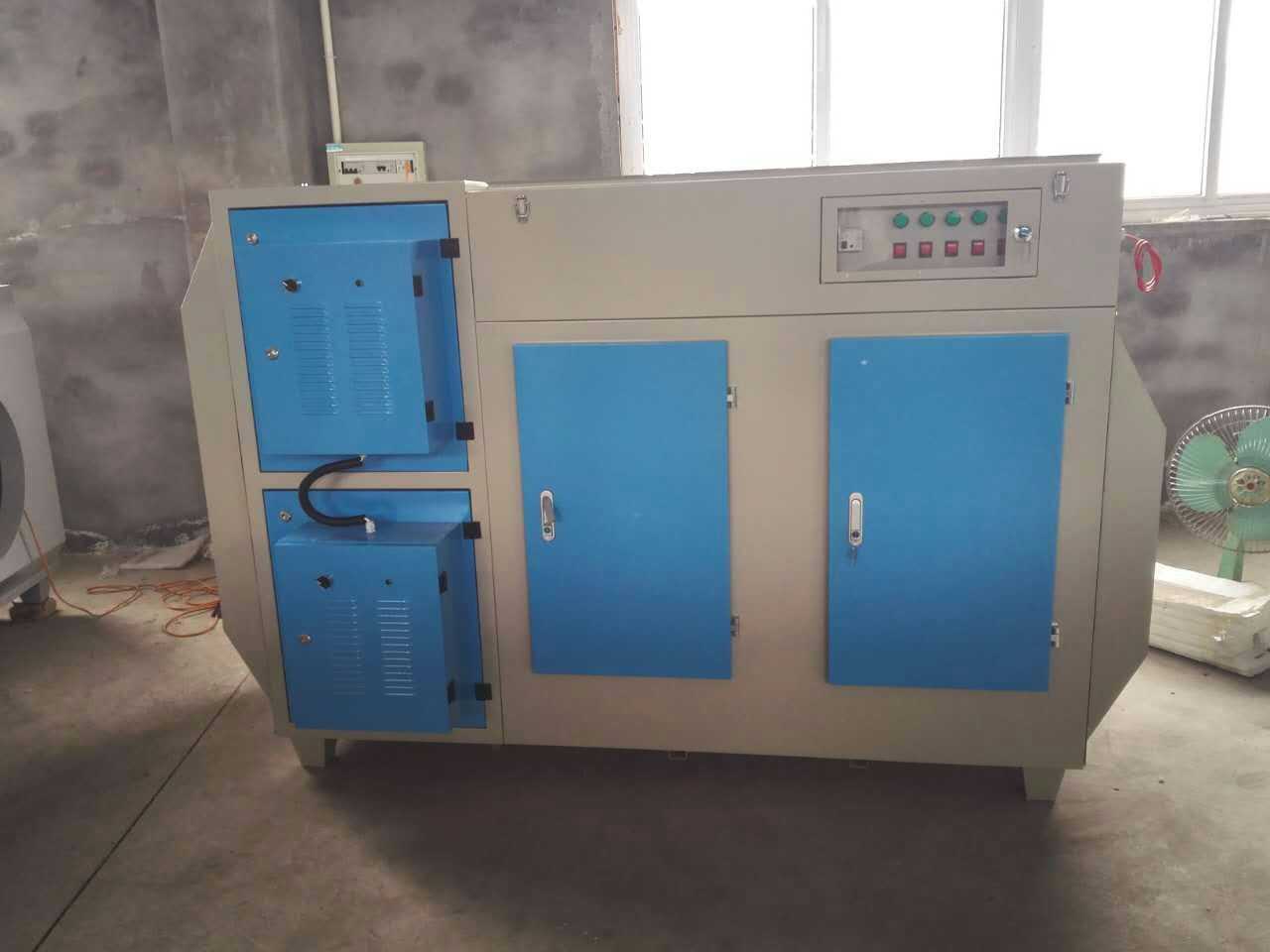 3、主机为成套工业废气处理装置,前面配有专用塔,能有效去除废气中的粉尘和水分,操作简单
